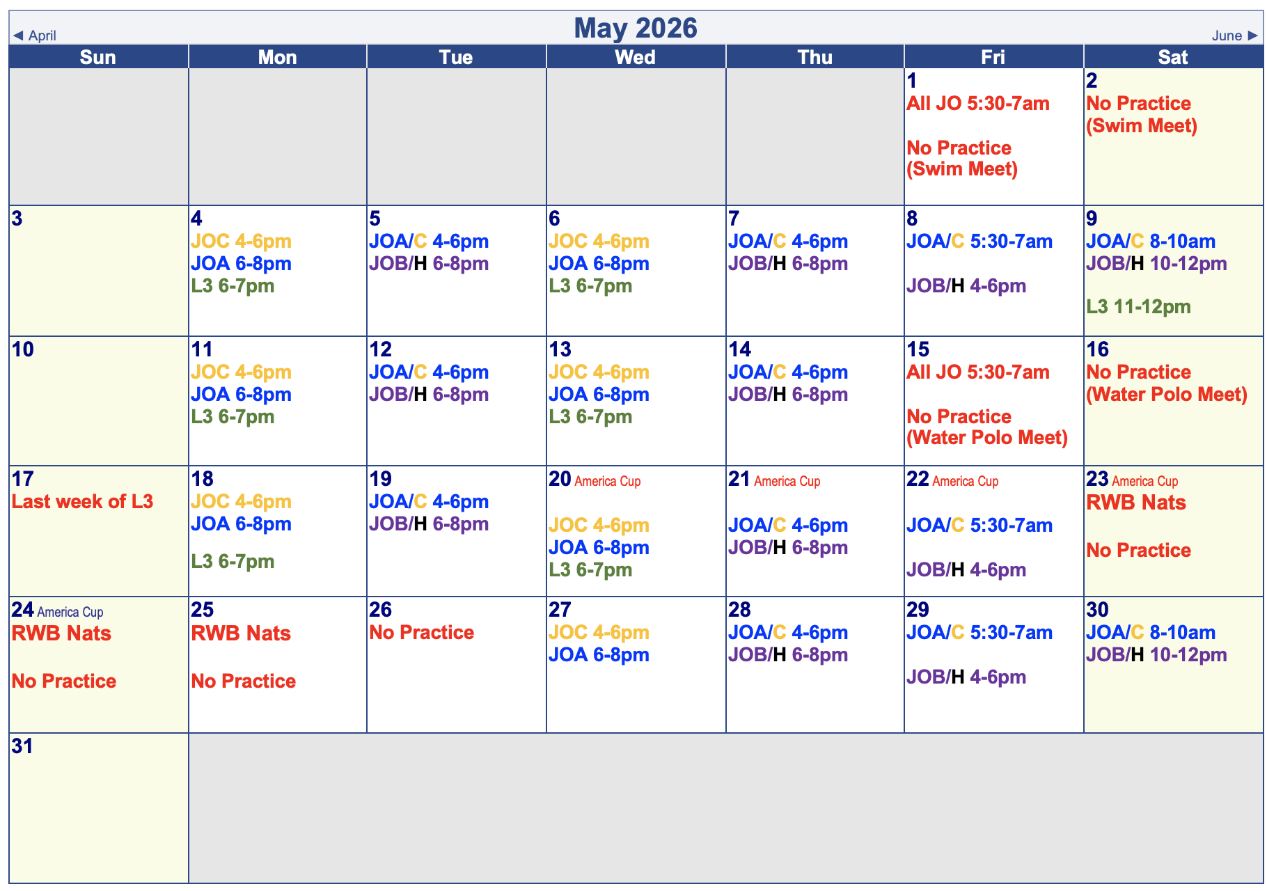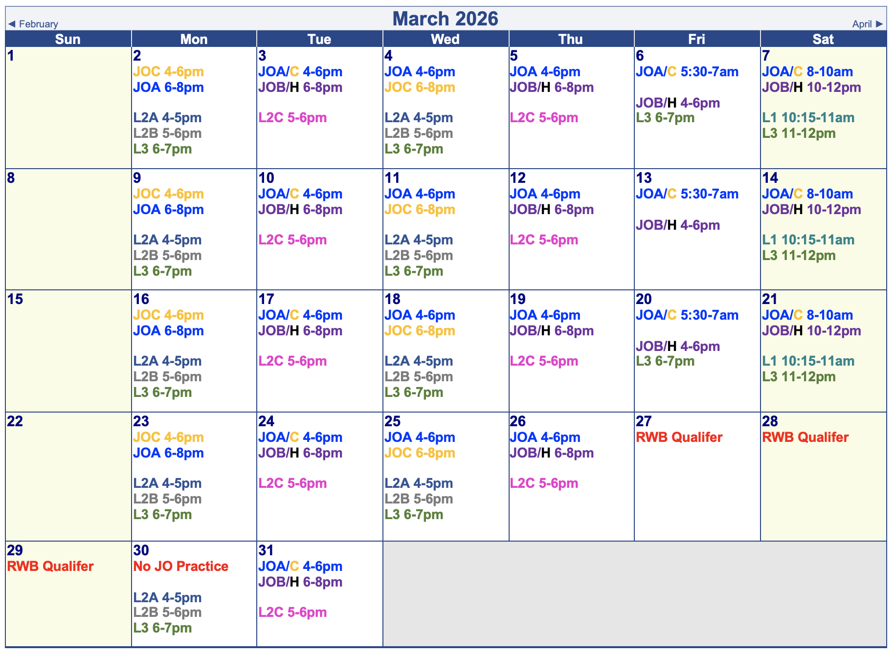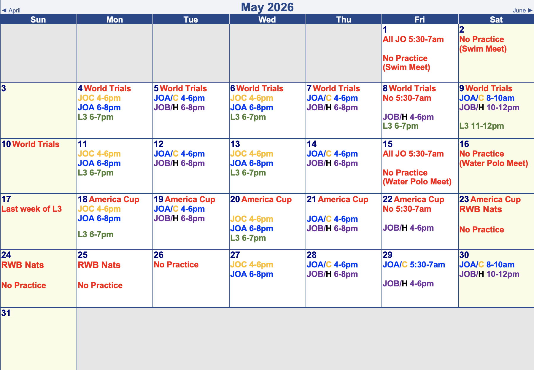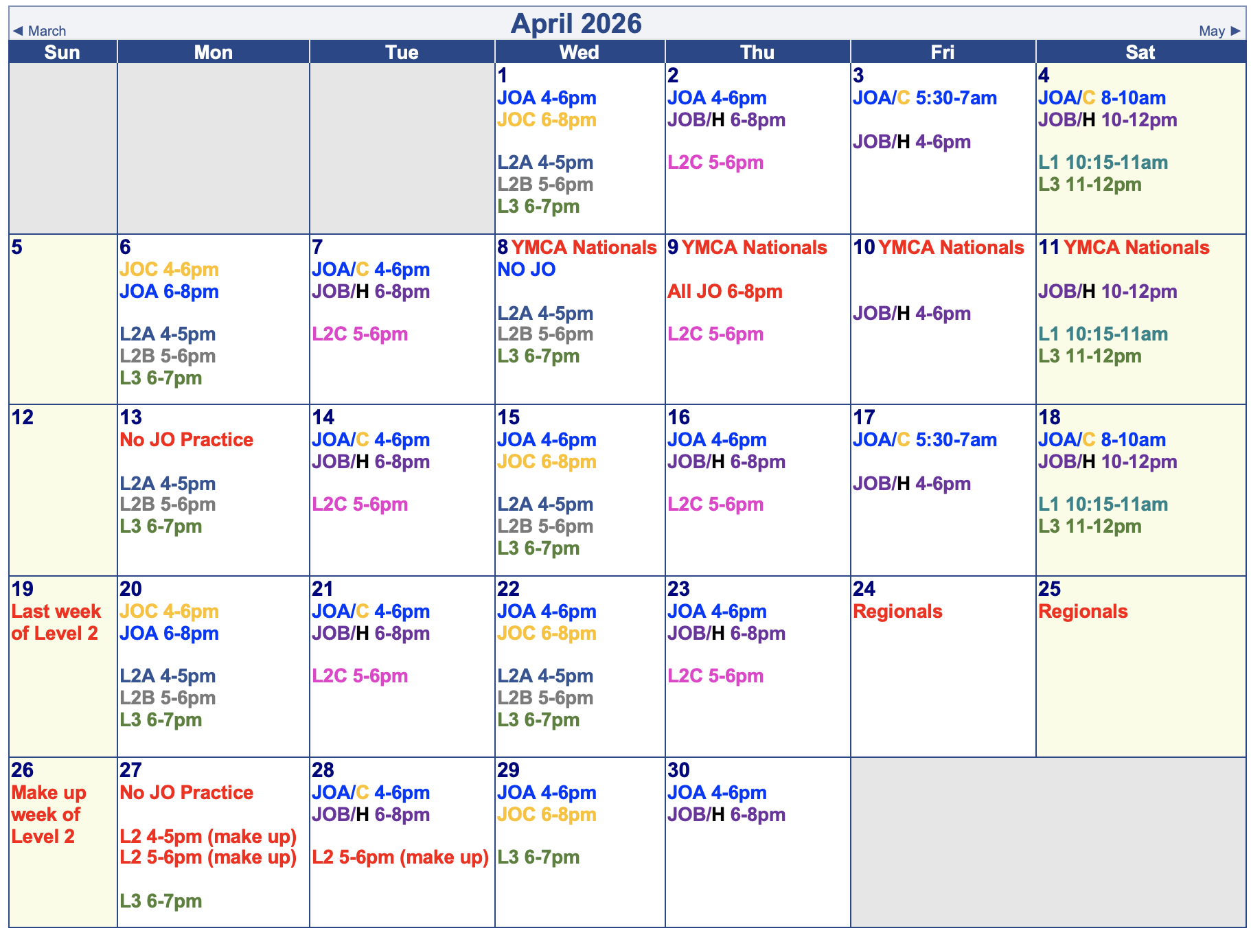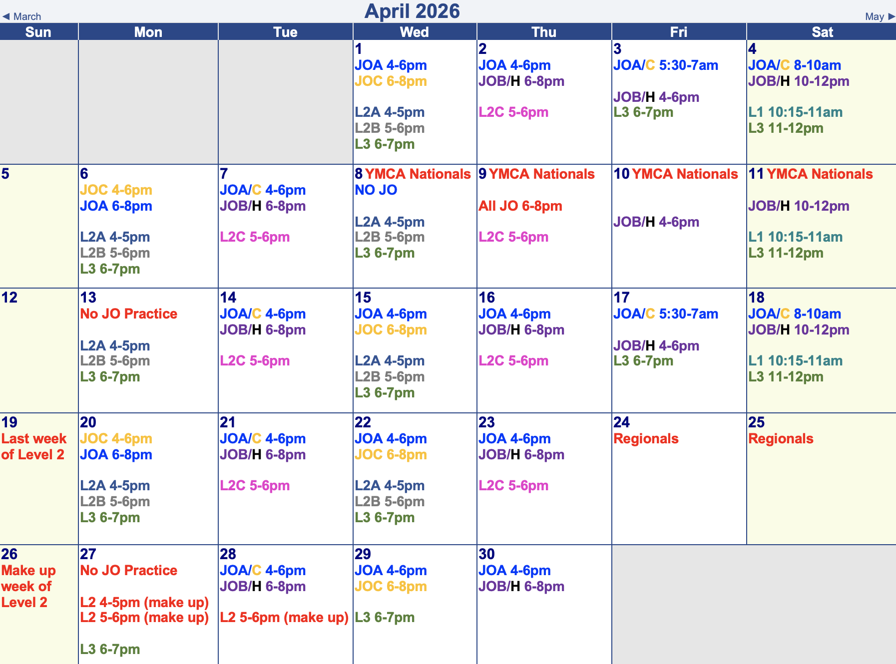Session Calendars